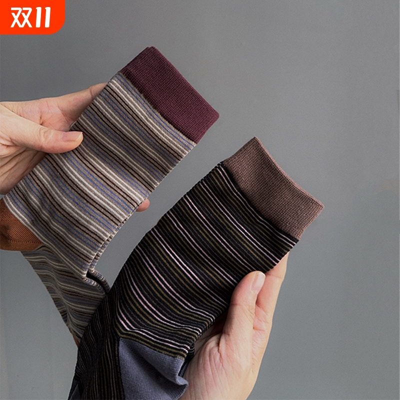 复古撞色条纹中筒袜子女百搭简约