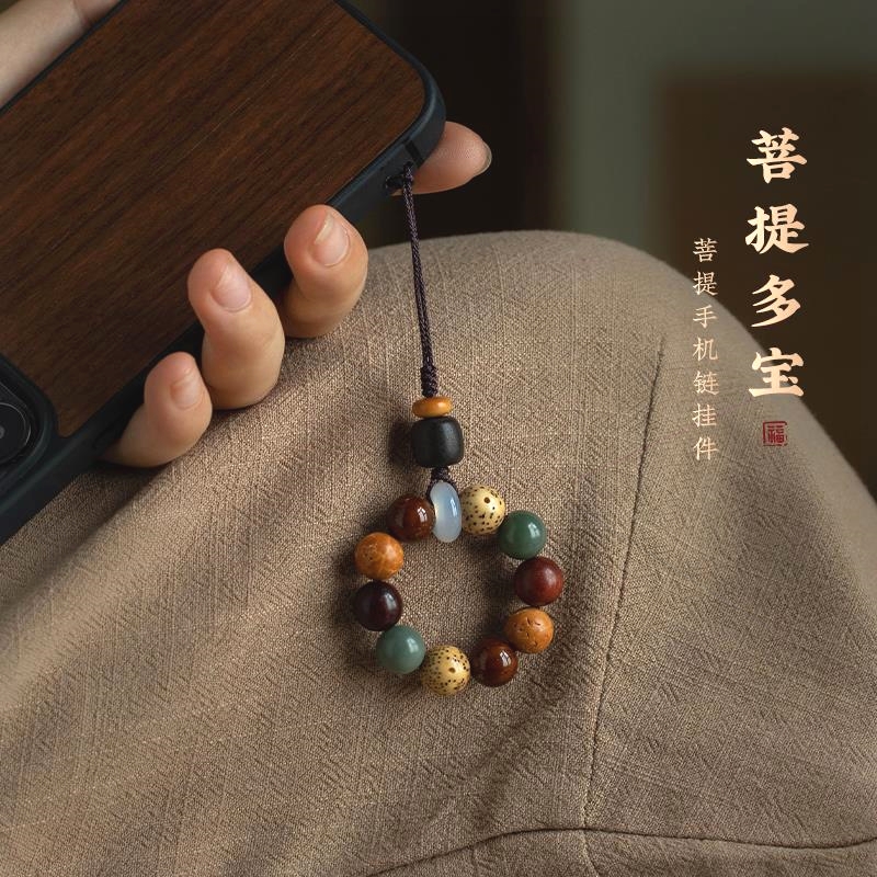 多宝菩提手机挂绳挂件沉香木指环扣手机吊饰品檀木复古防丢精致男