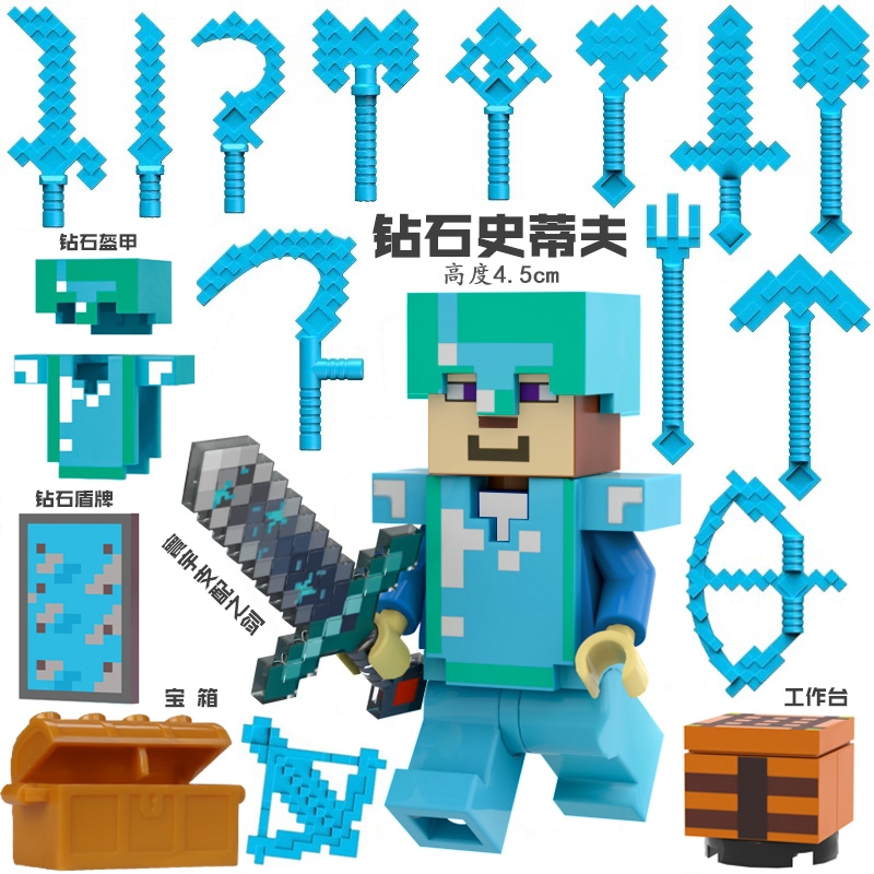 2025新品我的世界积木钻石史蒂夫套装盔甲武器男孩益智拼装玩具
