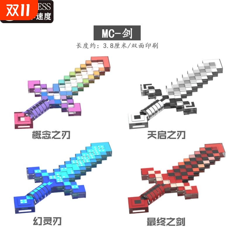 兼容乐高我的世界积木无尽装备概念之刃镐玩具下界盔甲合金村民