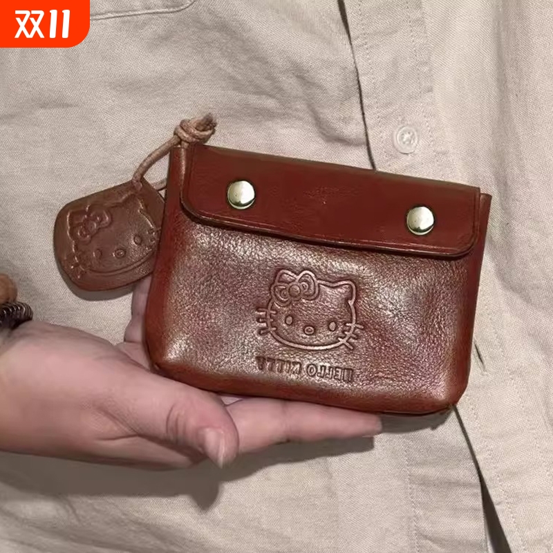 HelloKitty手工皮质零钱包女可爱迷你便携耳机钥匙证件随身