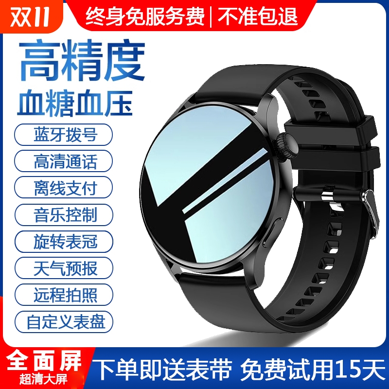 通用智能手机血糖尿酸血脂血压趋势评估心率监测手表健康运动记录摄像