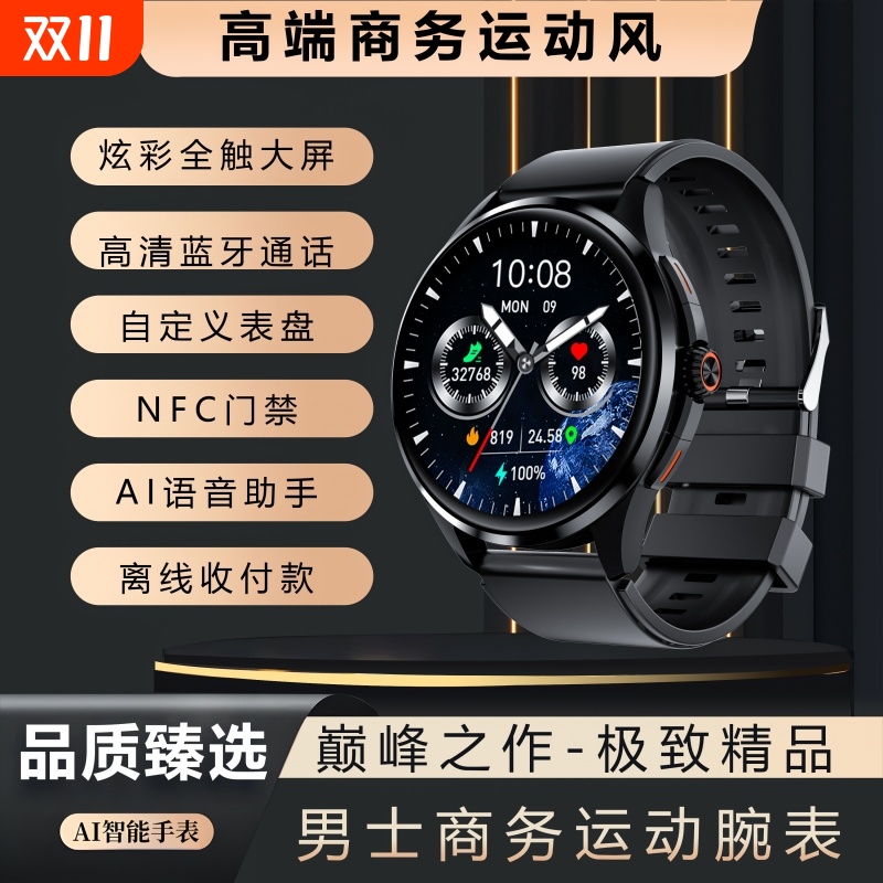 高端品质智能手表多功能黑科技支付运动手环测心率血压监测健康睡眠