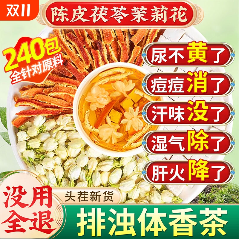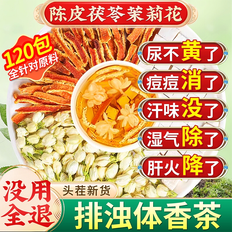 茉莉花茯苓陈皮茶包官方旗舰店正品中药材排浊气祛湿茶三清茶持久