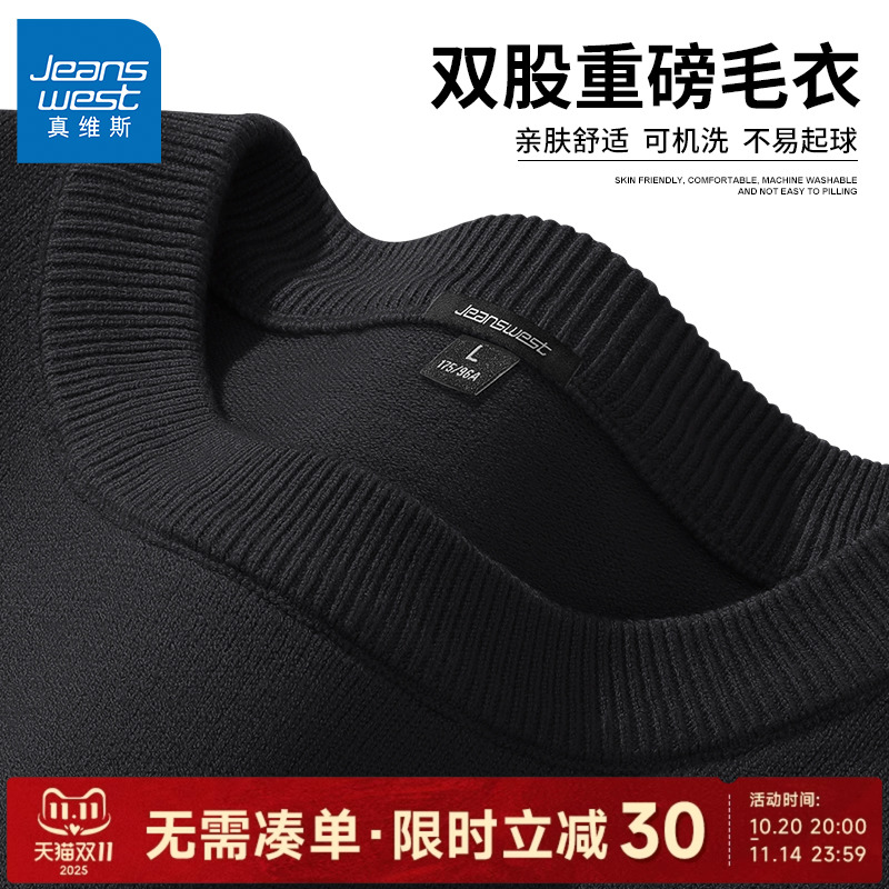 真维斯黑色毛衣男秋冬圆领