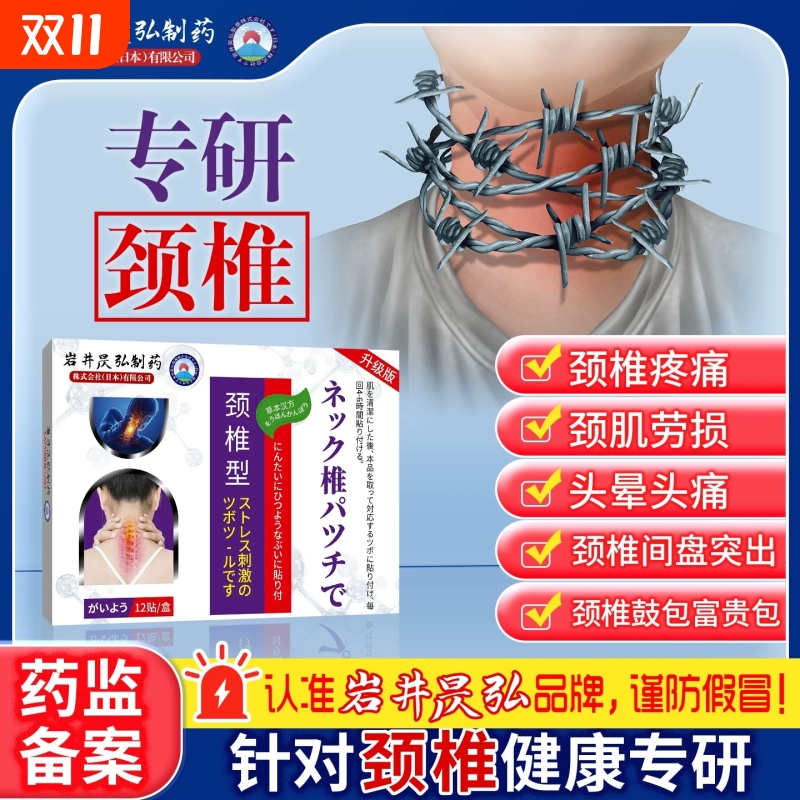 岩井颈椎贴膏药贴颈椎僵硬贴压迫神经穴位贴恶心酸胀手麻贴膏