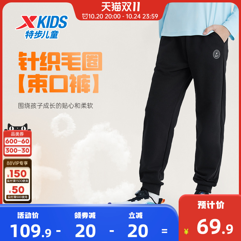 特步童装男童针织运动裤2025秋冬新款儿童冬装长裤中大童休闲裤子