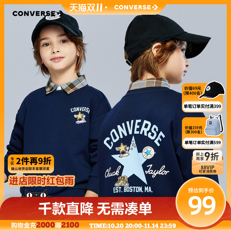 匡威童装男童卫衣2025冬季新款加绒舒适亲肤柔软学院风休闲打底衫
