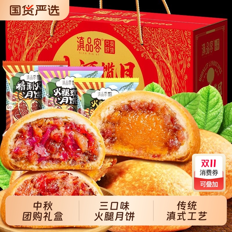 农科院云腿月饼礼盒正宗云南宣威火腿蛋黄月饼中秋团购送礼批发