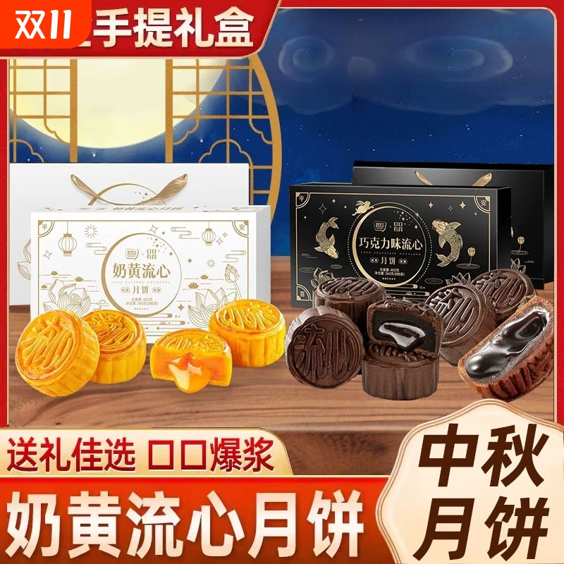 2025新款奶黄流心月饼礼盒中秋节送礼广式巧克力流心月饼批发
