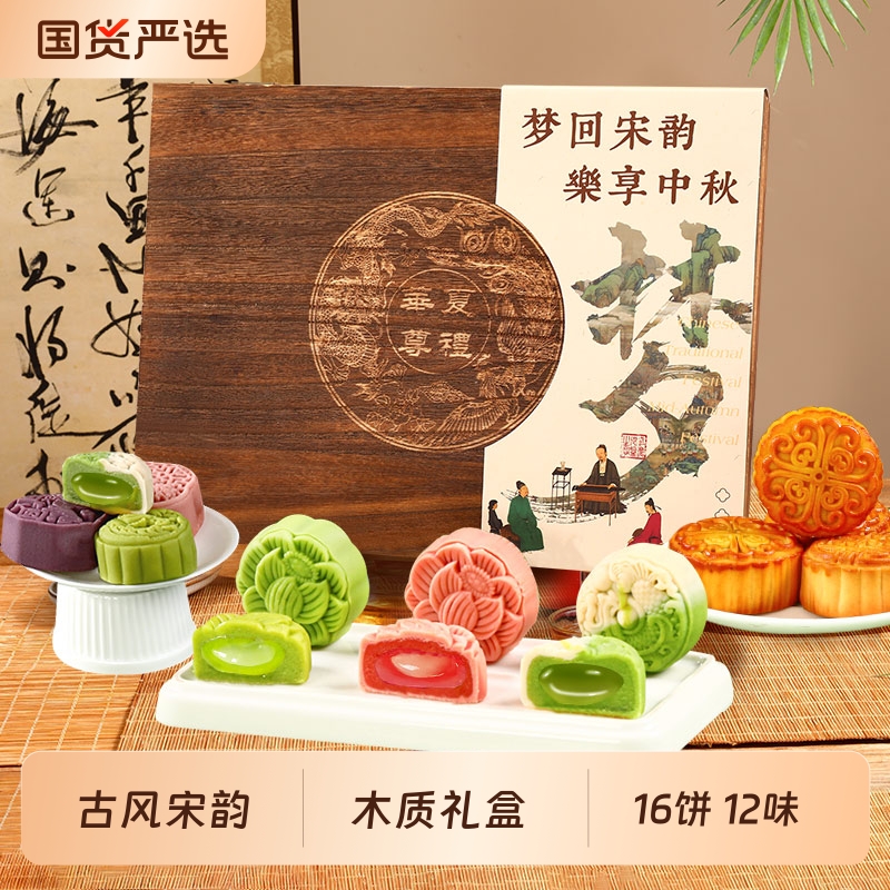 中秋节月饼礼盒装广式流心蛋黄高档官方旗舰店送礼礼品糕点散装