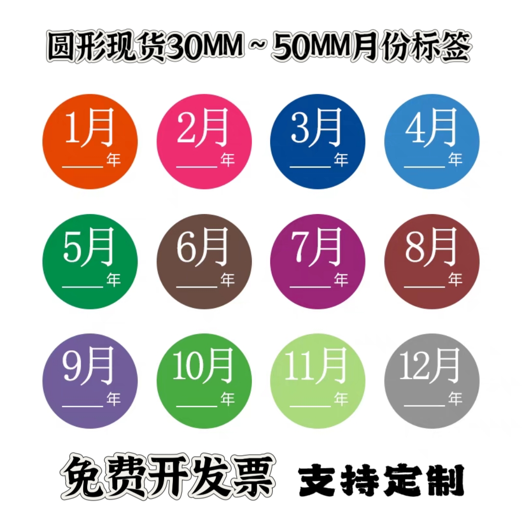 50mm彩色月份数字贴纸 1-12月数字分类标签不干胶 圆形月份