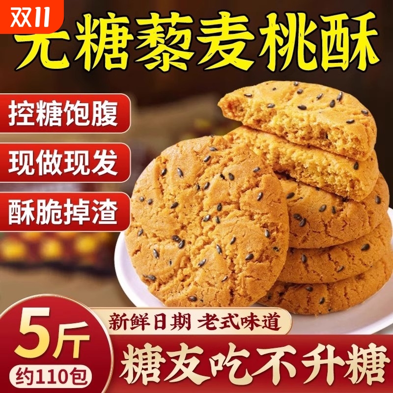 无糖藜麦桃酥桃芝麻糖尿人代餐健康饱腹无糖传统桃酥饼干早餐零食