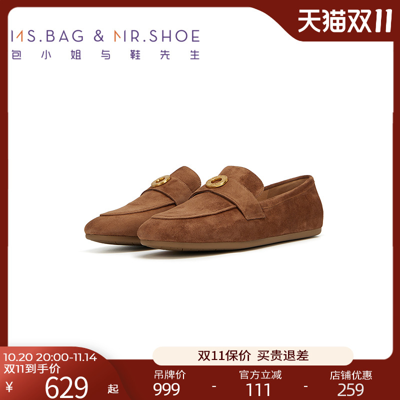 包小姐与鞋先生2025年春季新品焦糖棕羊皮平底深口单鞋女2510