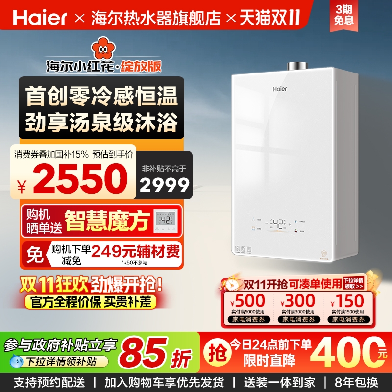 [小海鲸]海尔燃气热水器小红花零冷感KL5MAX家用天然气恒温静
