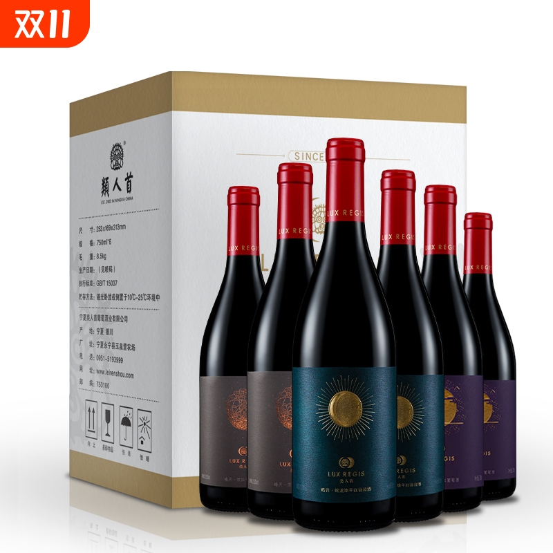 类人首 宁夏红酒 皓月赤霞珠干红葡萄酒750ml*6支装