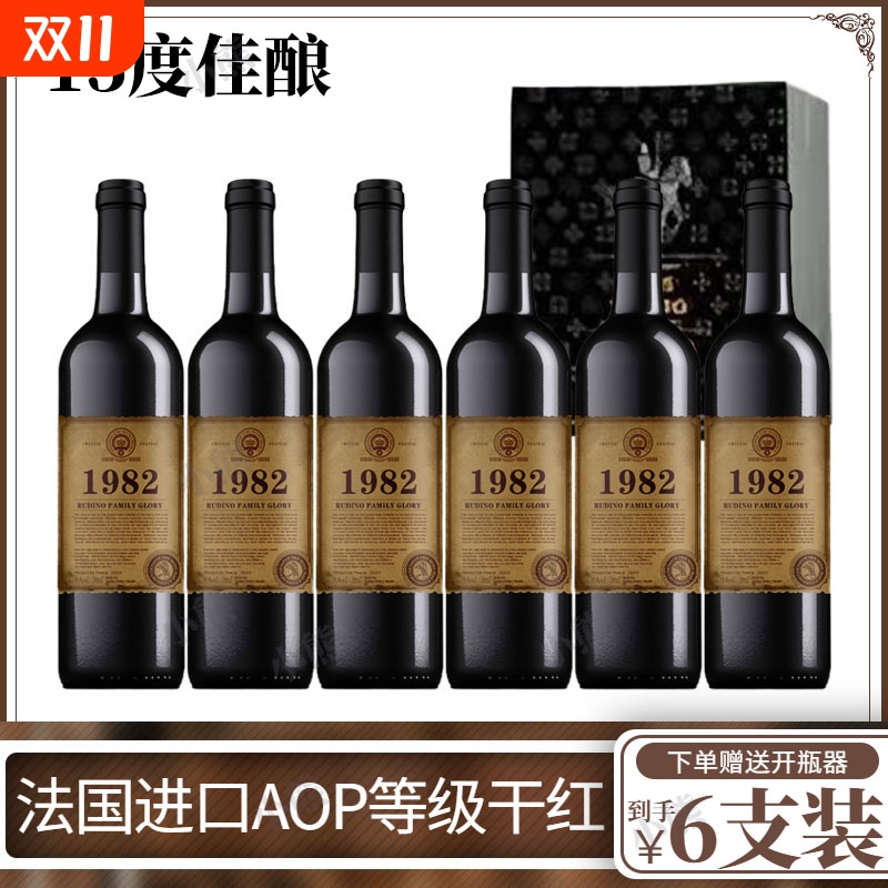 法国进口红酒整箱6支装赤霞珠14度750ml干红葡萄酒过节聚会酒