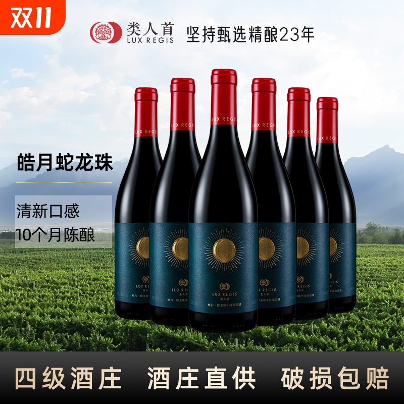 类人首 宁夏红酒 皓月蛇龙珠橡木桶干红葡萄酒750*6支装