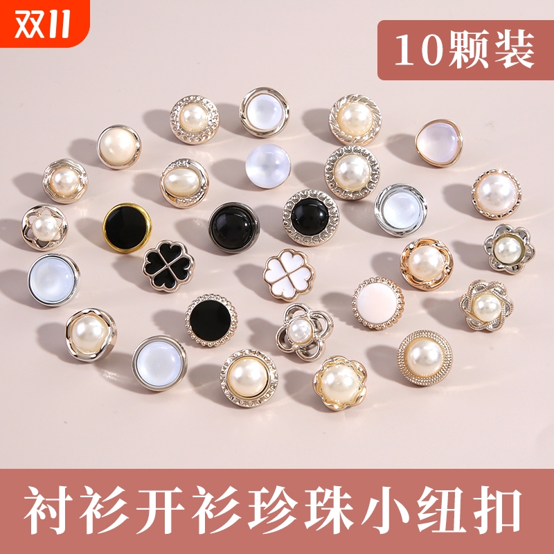 女士衬衫纽扣小香风珍珠扣子开衫韩版雪纺衣服衬衣高档小钮扣装饰