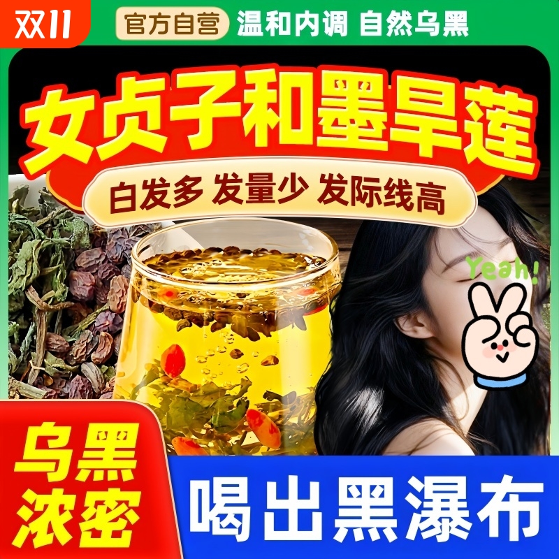 女贞子和墨旱莲养发乌发组合中药材茶包无熏硫浓密黑发固发泡水喝