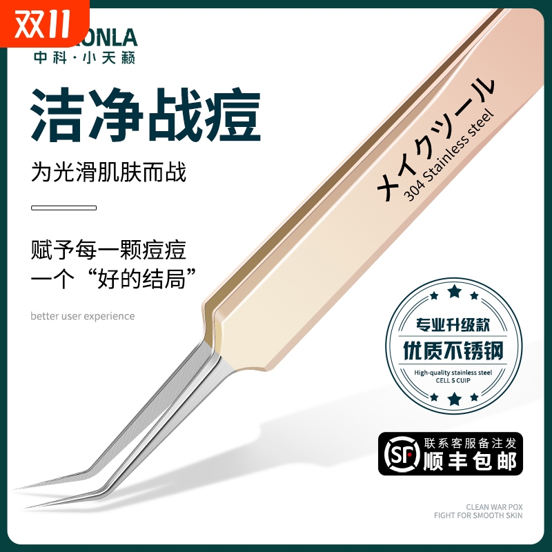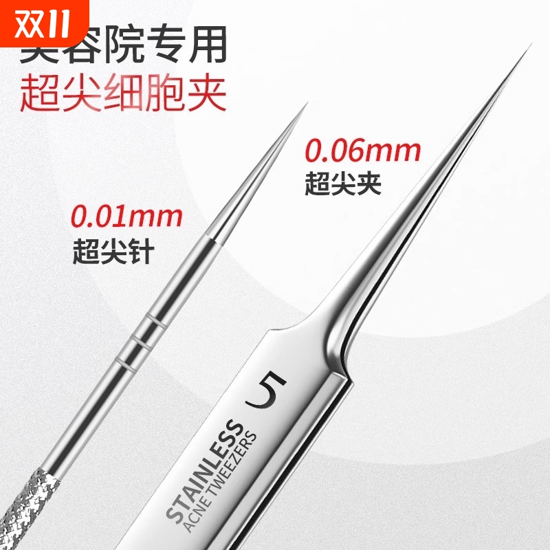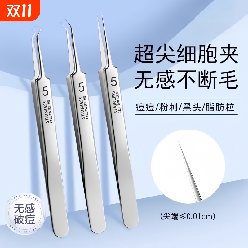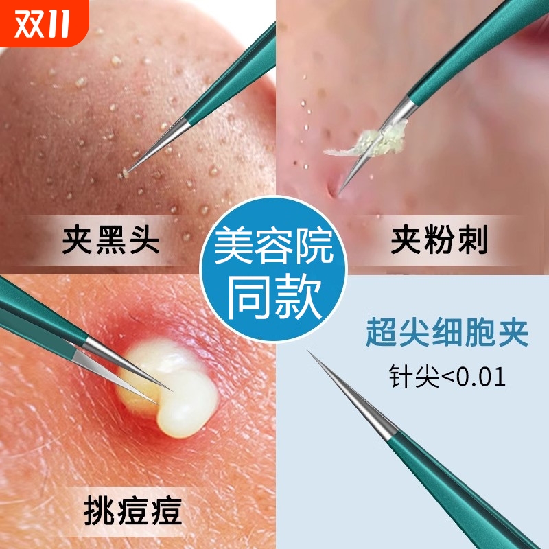 高精密细胞夹去黑头神器斜嘴镊子美容院专用刮闭口粉刺夹暗疮针清