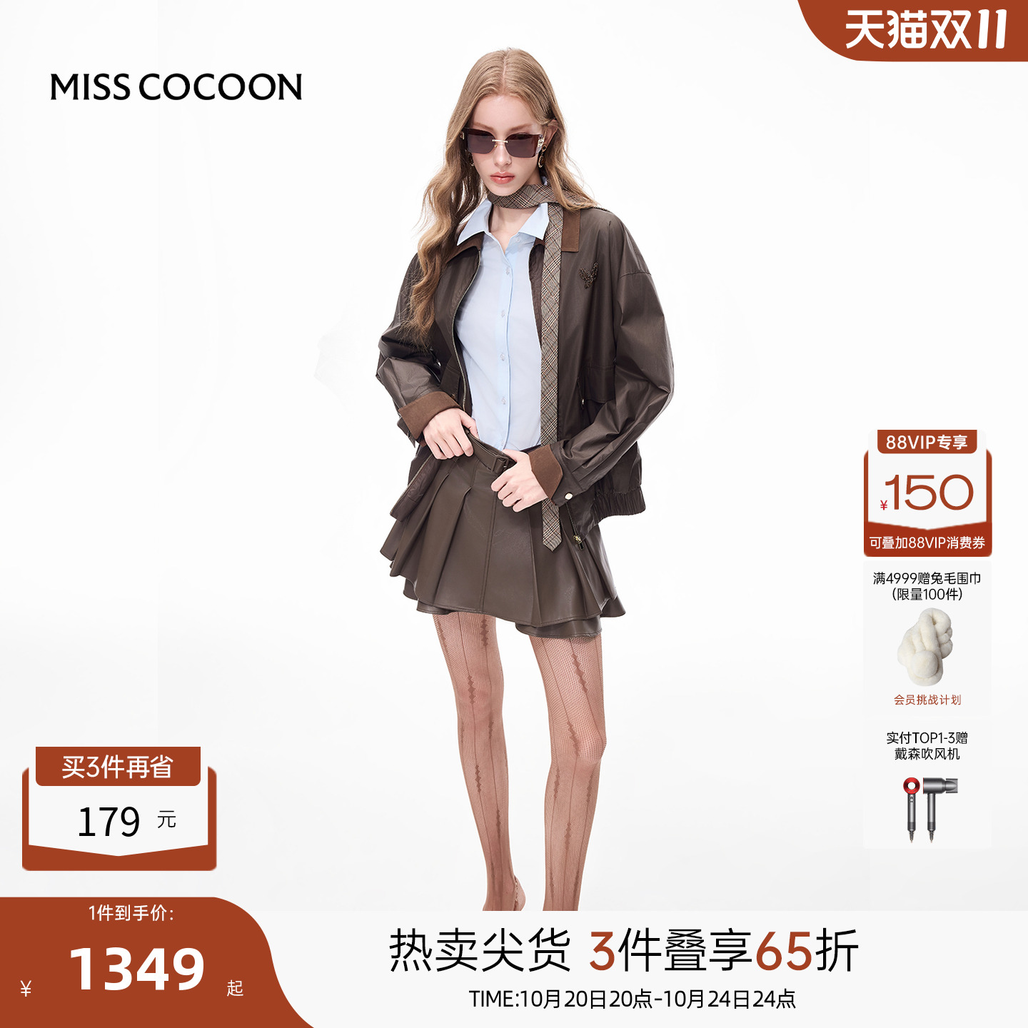 MISSCOCOON祝绪丹同款咖色仿皮衣女2025秋季巴恩风撞色