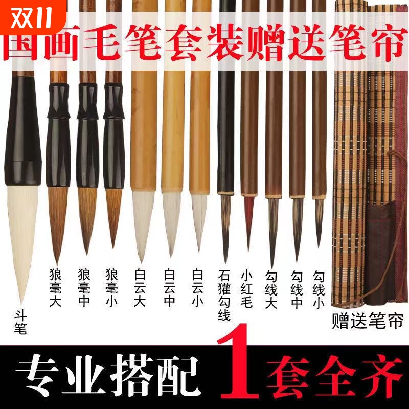 毛笔套装初学者入门国画水墨工笔画勾线笔白描写意狼毫兼毫大白云