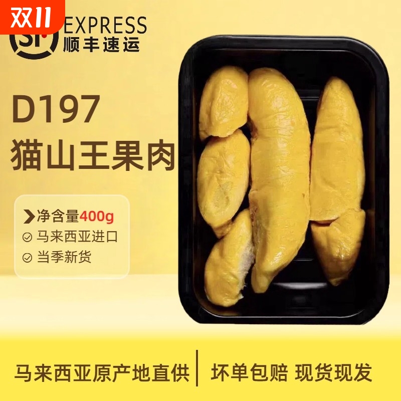 马来西亚D197猫山王榴莲液氮冷冻果肉400g盒装顺丰包邮当季树