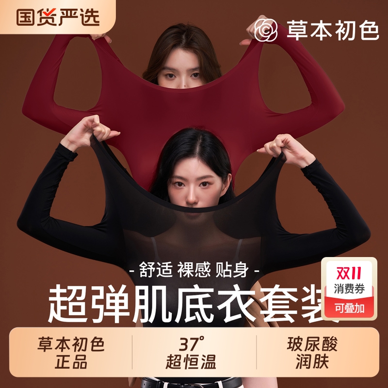 肌底衣秋冬保暖内衣女士打底秋衣无痕紧身套装内搭发热隐形贴身