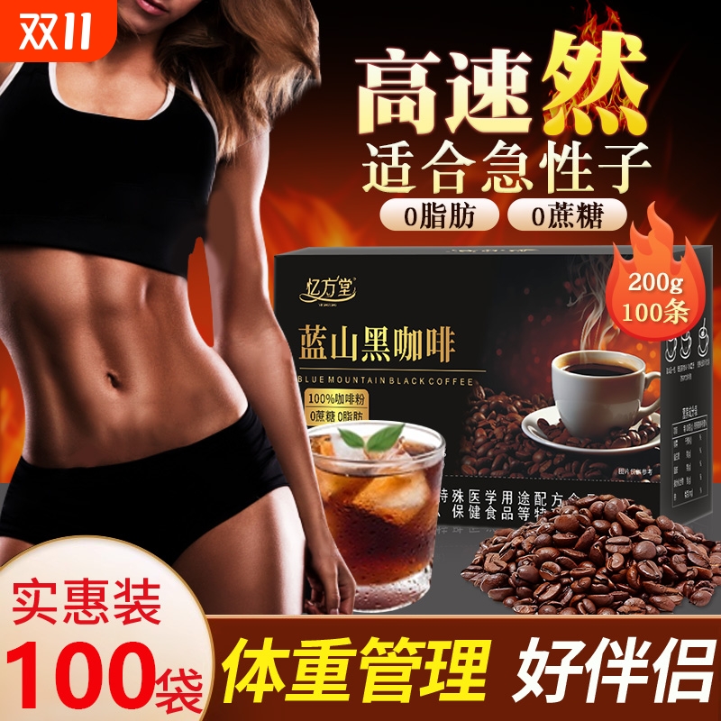 蓝山黑咖啡官方旗舰店正品燃减0脂瘦咖啡无糖0减提高代谢肥身速溶