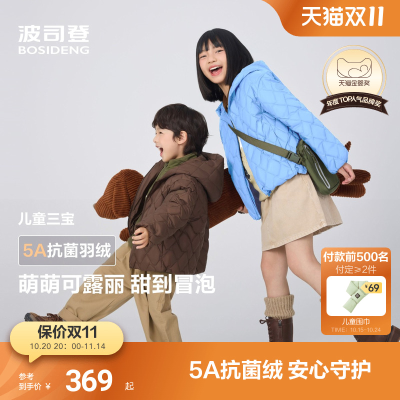 【巴恩风】波司登儿童羽绒服女童抗菌耐脏时尚25秋新品外套男童