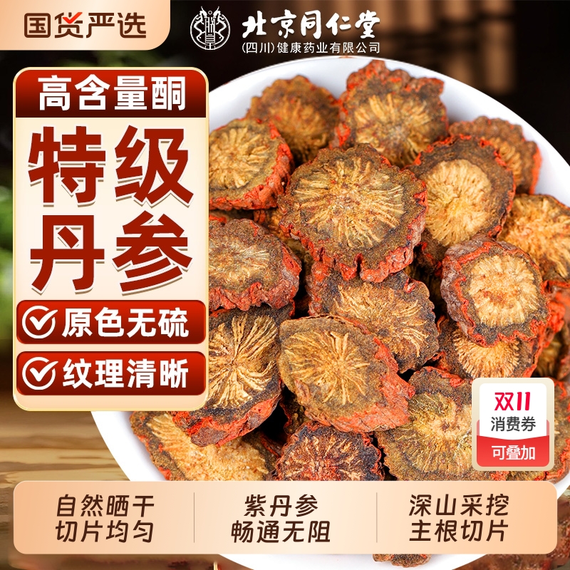 北京同仁堂丹参中草药材正品官方旗舰店紫丹参粉非野生泡水茶切片