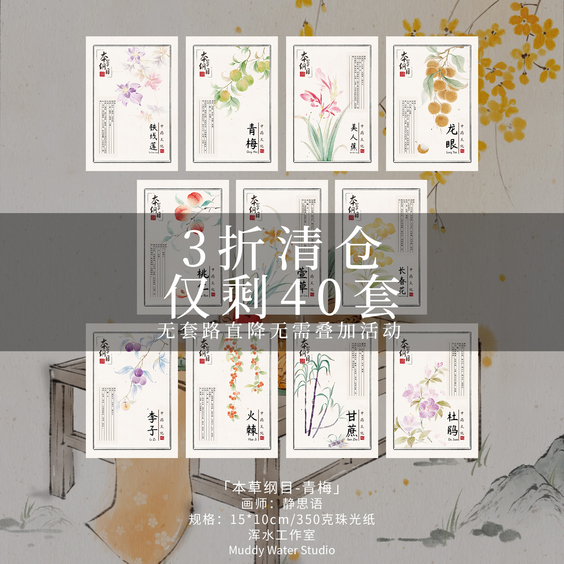 「草本纲目·中草药图志」原创手绘明信片插画中药文化贺卡礼物