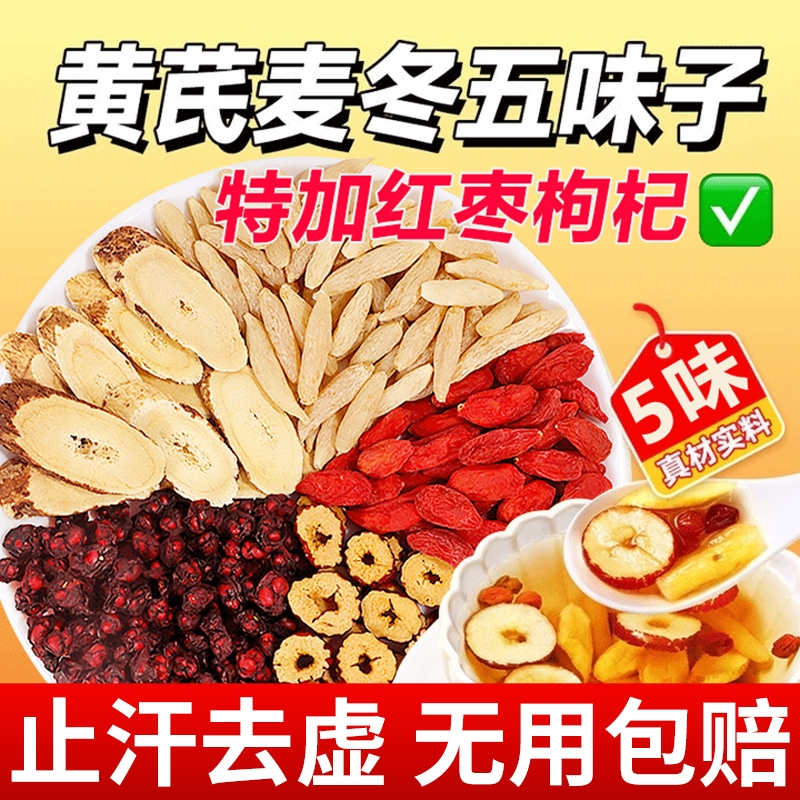 止汗麦冬五味子茶官方旗舰店泡水药组合出汗多黄芪茶红枣原材料