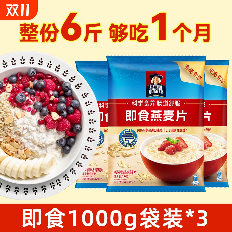/桂格即食冲饮纯燕麦片1478g/1000g原味营养早餐袋装代餐
