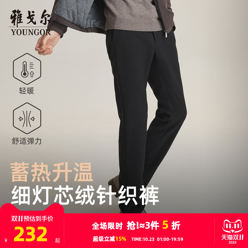 雅戈尔秋新款灯芯保暖休闲裤男士