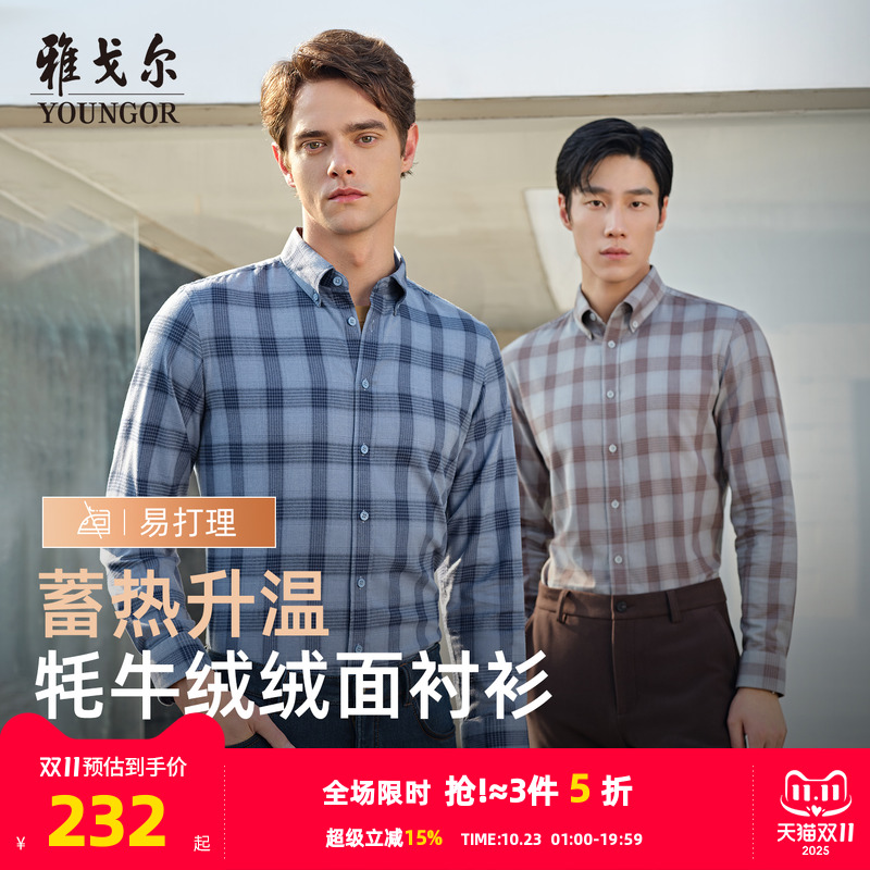 雅戈尔领尖打扣长袖商务绅士衬衫