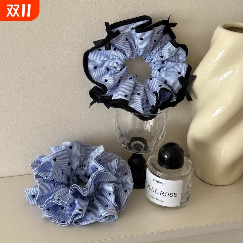 蓝色条纹大肠发圈~4层!ins风韩系爱心波点发绳低丸子头马尾头绳