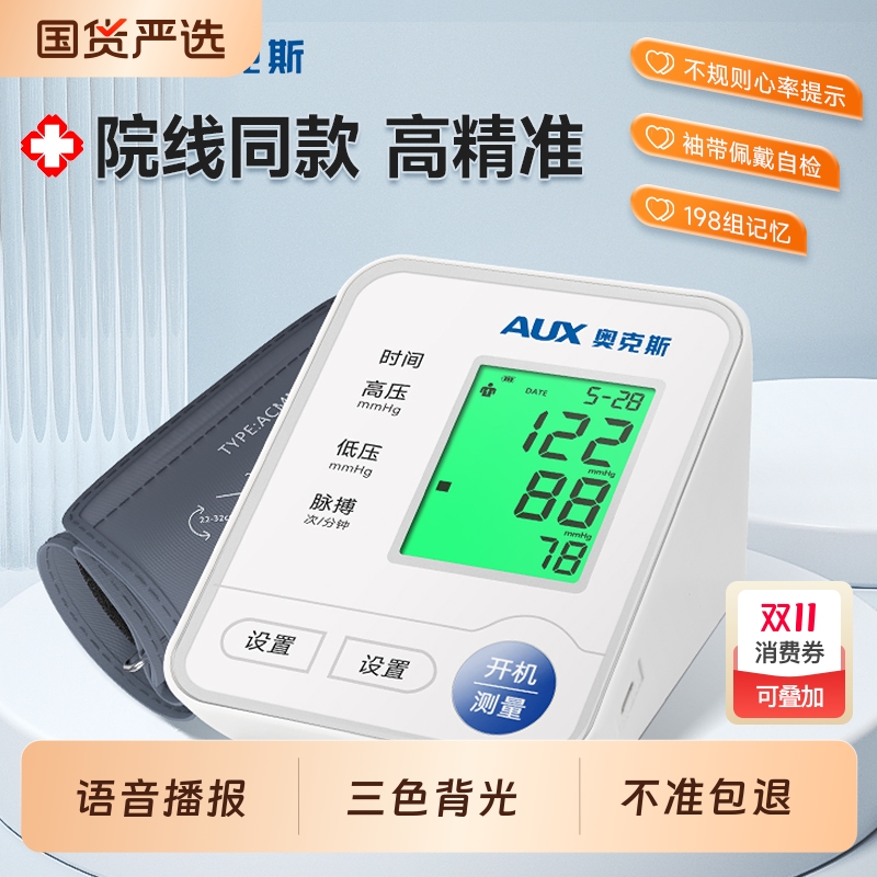 奥克斯电子血压计家用臂式高精准语音血压测量仪医用高血压测压仪