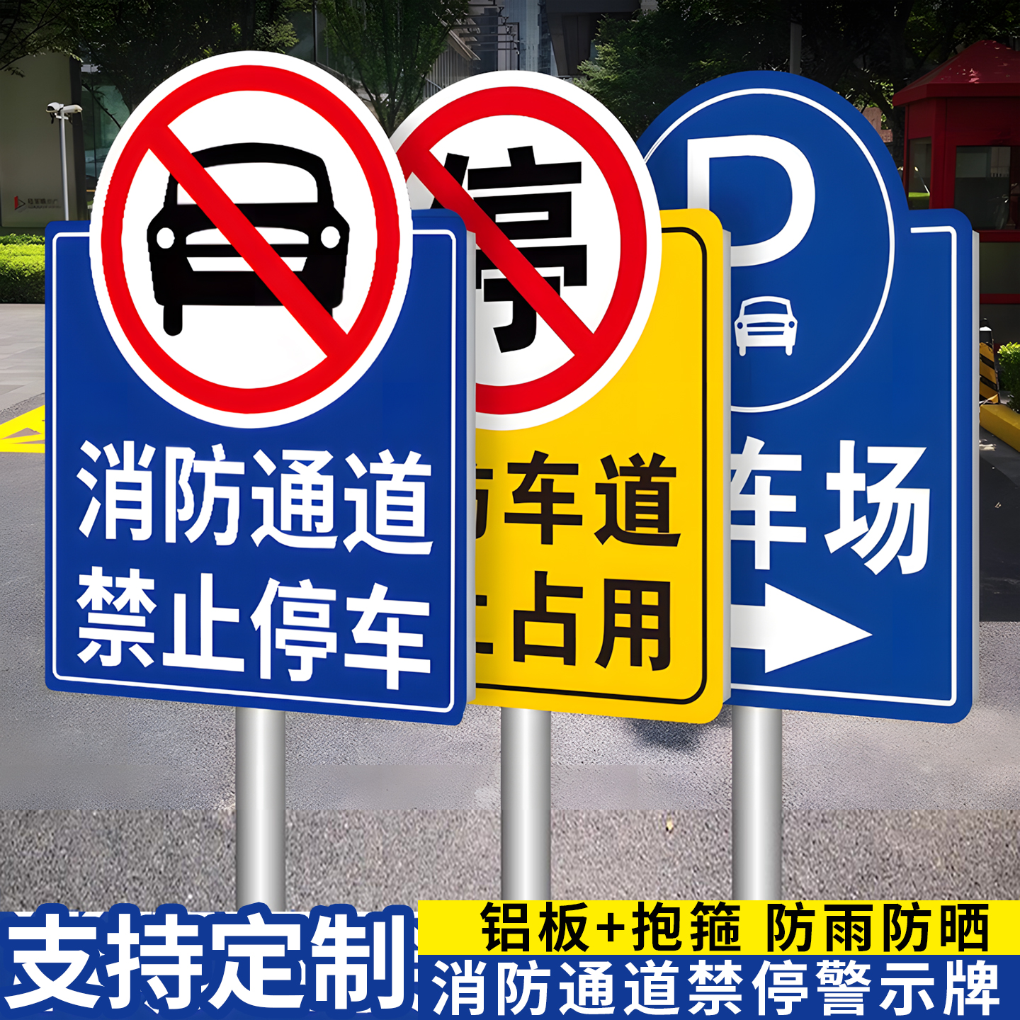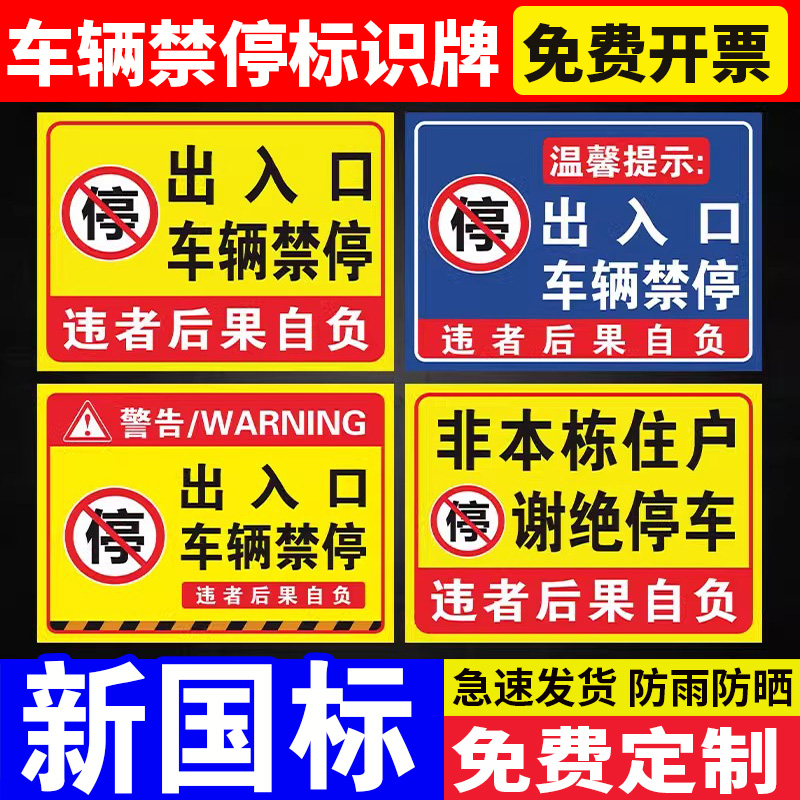 出入口车辆禁停禁止停车请勿停车铝板反光标识牌PVC板指示牌警告警