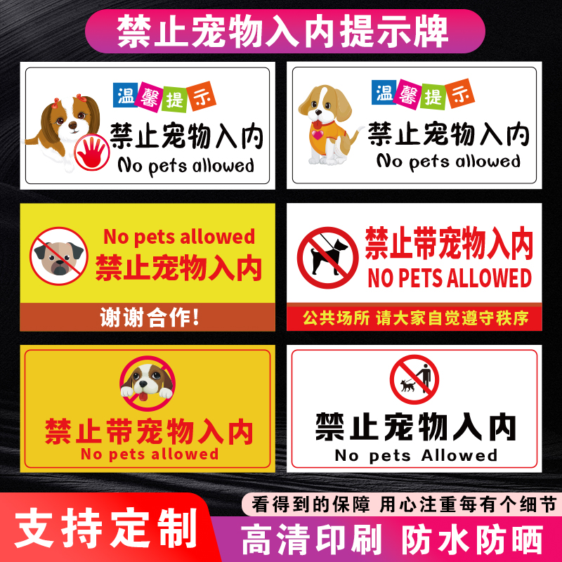 禁止宠物入内提示牌超市商场店铺门口亚克力标识牌携带宠物禁入贴纸小