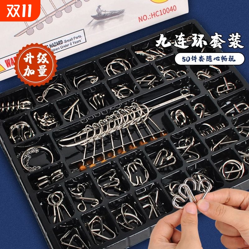 九连环智力解扣益智玩具鲁班锁孔明锁全套儿童小学生24件套不锈钢