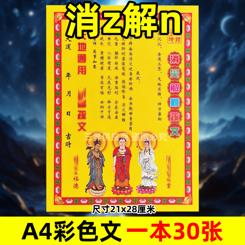 消z解n表文30张A4彩色黄纸文书疏文各种大全21x28cmq福