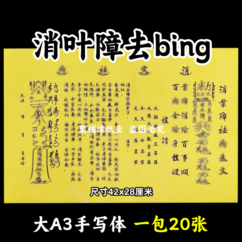 消y障去b表文大A3手写字体73号黄纸各种疏文书牒摆件贴纸20张