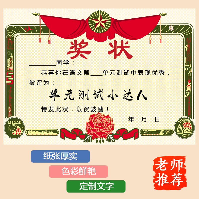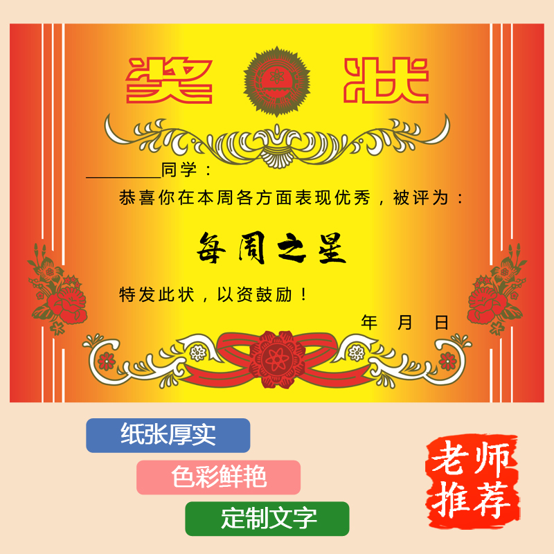 奖状纸A4创意空白中小学生奖状教师奖励证书多款加厚铜版纸定制