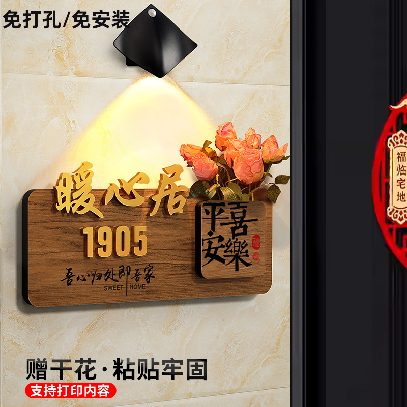 入户门牌定制房间进门装饰门牌号家用自粘新款高级感轻奢创意带花门号