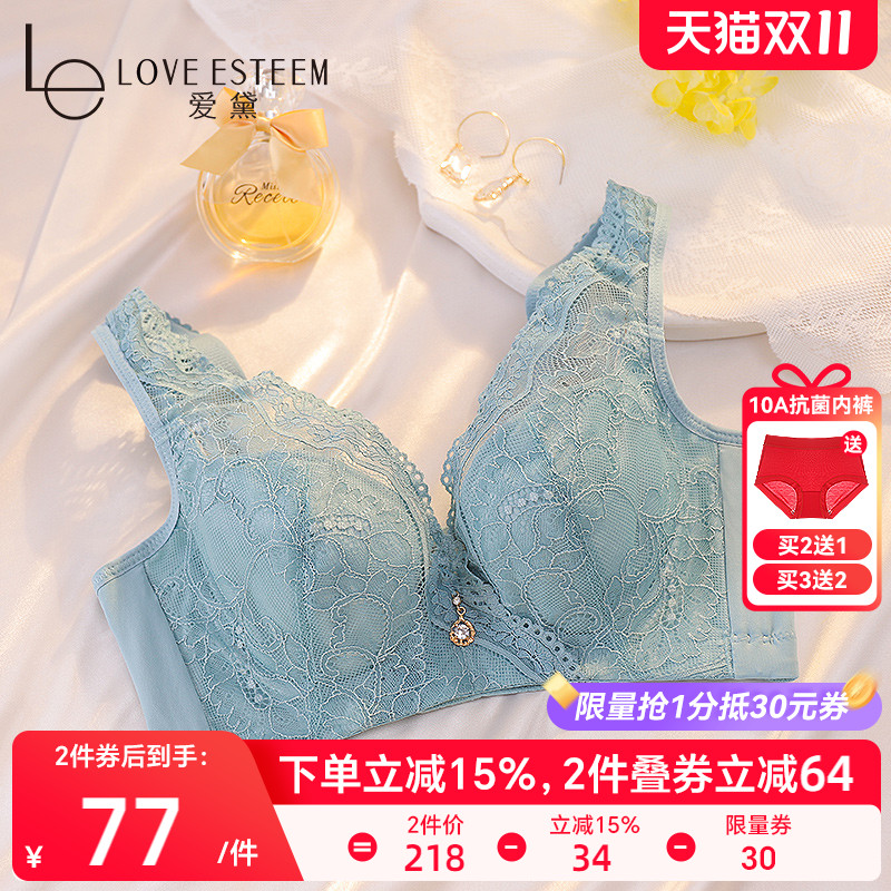 性感纯欲蕾丝内衣女士大胸显小聚拢上托防下垂调整型薄款文胸套装