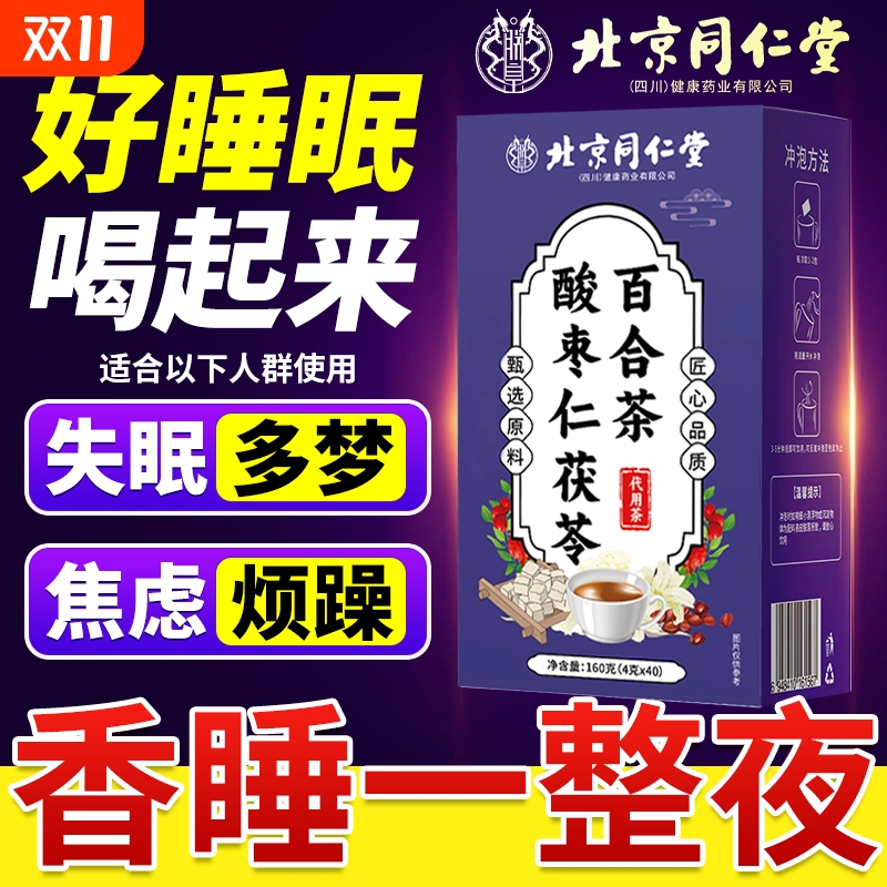 北京同仁堂酸枣仁百合茯苓茶睡眠茶包严重难眠质量差多梦易醒正品