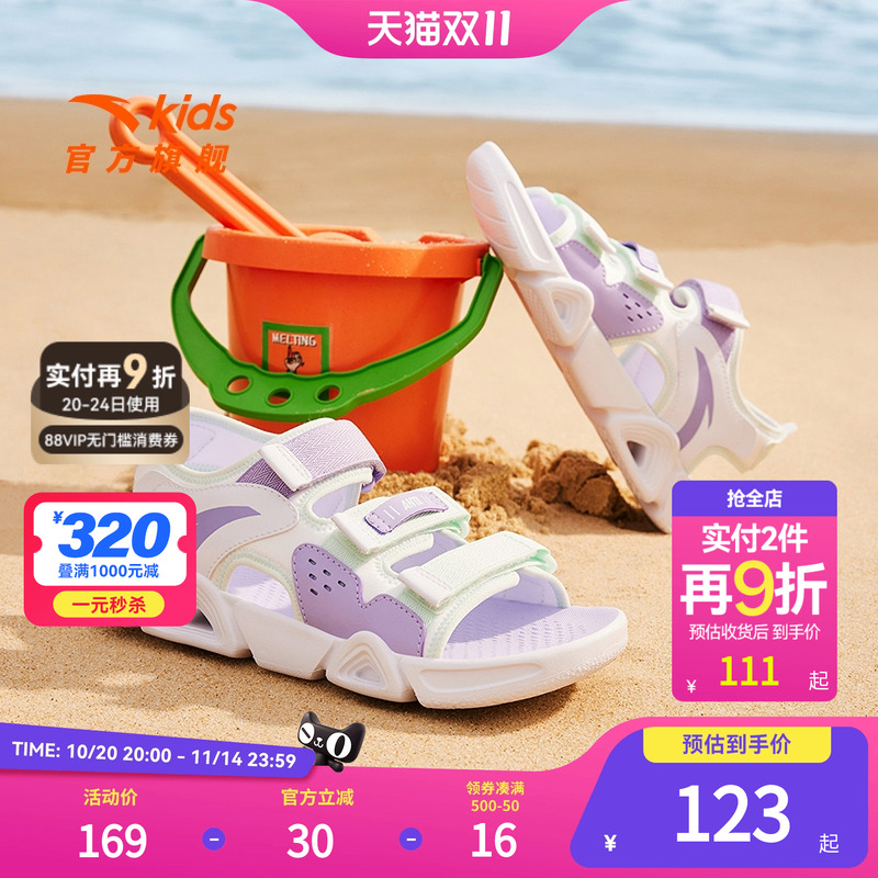 【清仓】安踏女童沙滩鞋2025年夏新款女大童露趾童鞋透气儿童凉鞋