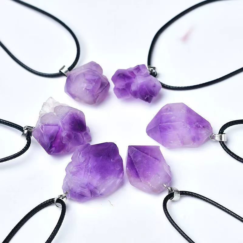 紫水晶簇吊坠天然巴西转运水晶DIY女生吊坠生日礼物紫色项链